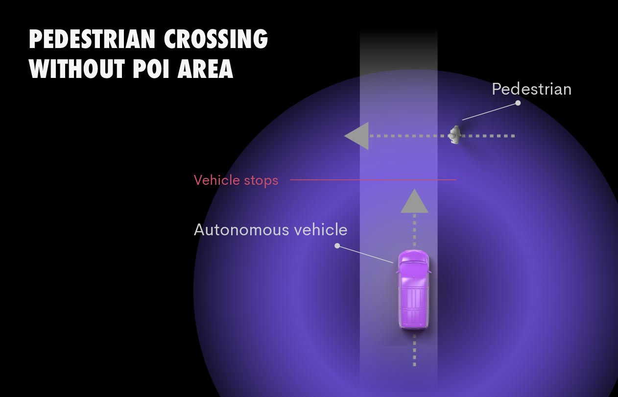 A test such as this where a pedestrian dummy is moved from the sidewalk onto the road is one of the most important tests for an autonomous vehicle – it’s not allowed to hit an obstacle, whether it is on the sidewalk or not.
